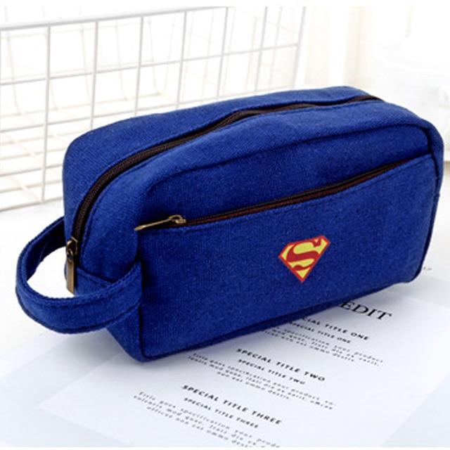 Pencil case with superheroes (Superman, Batman).