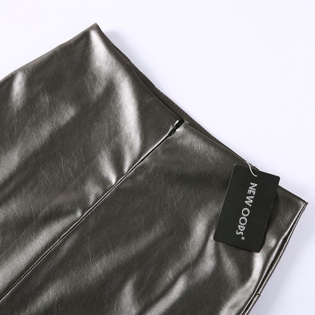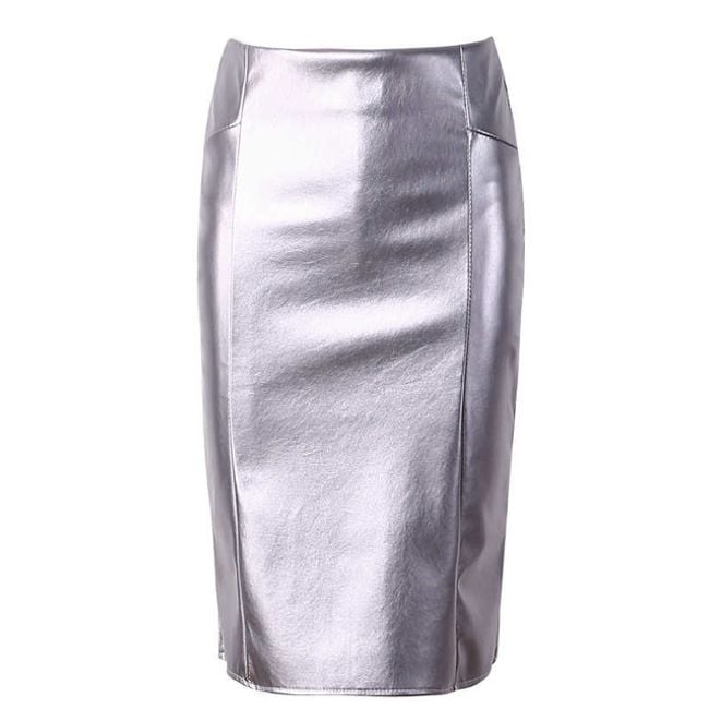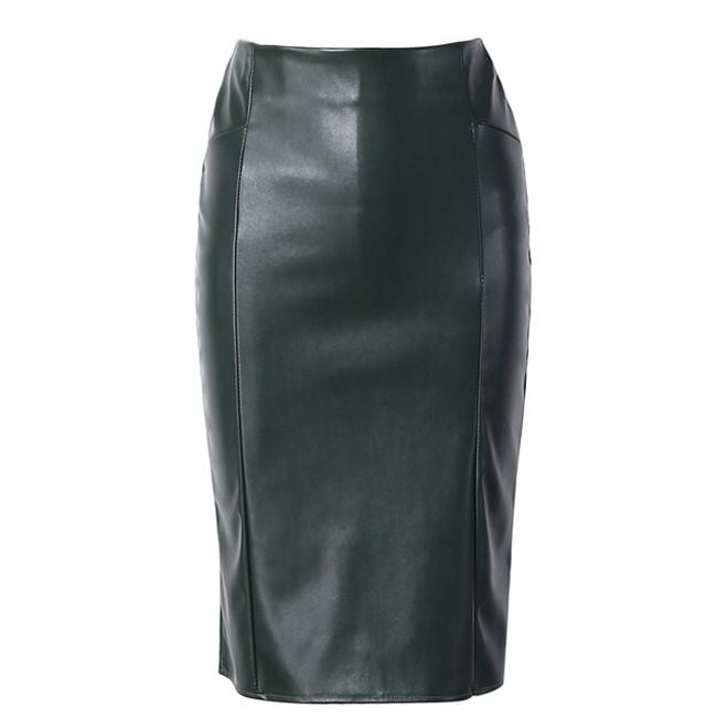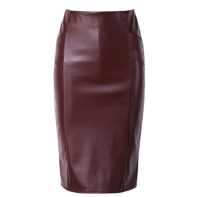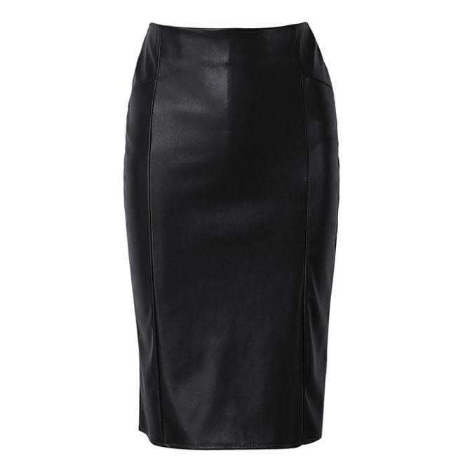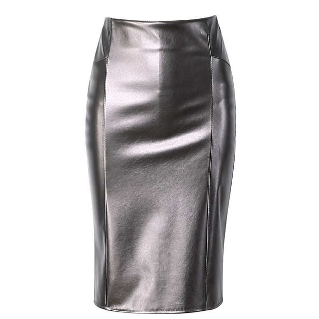 Women's pencil skirt made of faux leather in various colour options. The size chart shows the measurements of the product, not the body.
