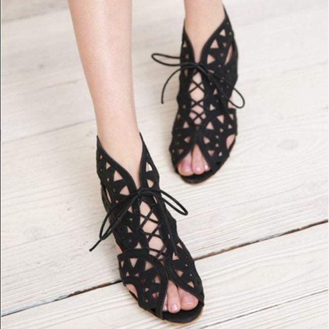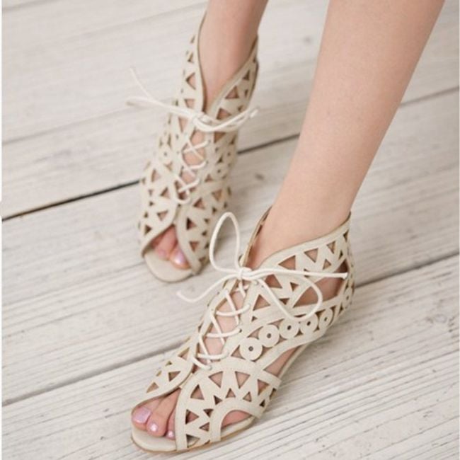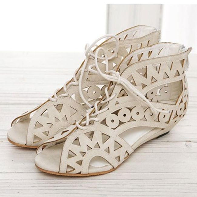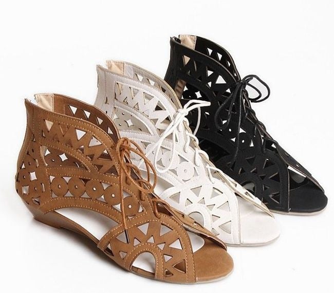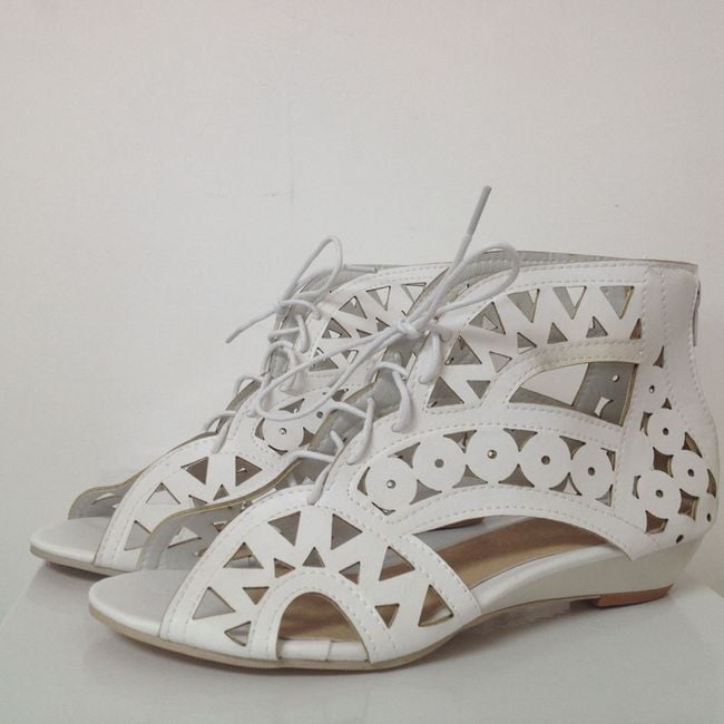 Women's sandals on a low wedge look simply fantastic and unique on the foot. The perforated material made of synthetic leather creates various geometric patterns. They are laced at the instep and fasten with a zip at the heel. You can choose from several colours and many sizes. The size chart can be found below in the product specifications. We recommend following the measurements in centimetres.