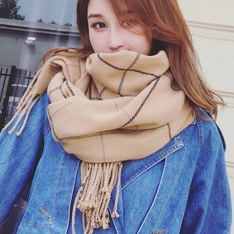 Women's warm scarf with fringes. Checked pattern. Dimensions 175 cm. Available in multiple colour options.