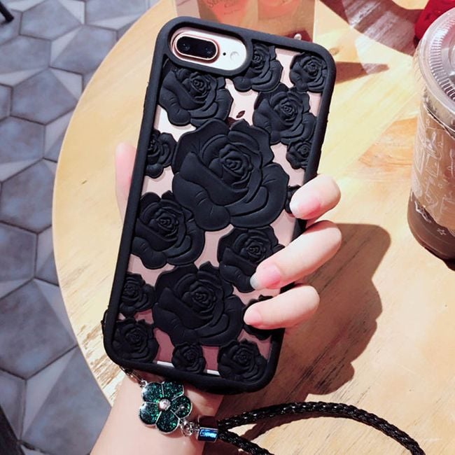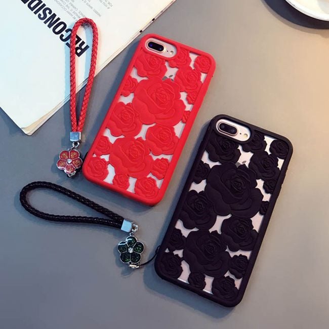 The case looks elegant and features a rose pattern. Available in two colours.