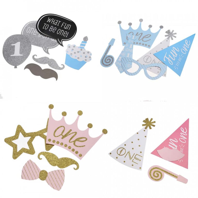 Do you have a talented photographer at home, or do you enjoy taking photos yourself? This prop set is perfect for enhancing your little one's 1st birthday. Both professional photographers and amateurs will find this package appealing. It can also be used repeatedly. The set includes 20 designs and a set of wooden sticks that can be attached to the props for easy handling.