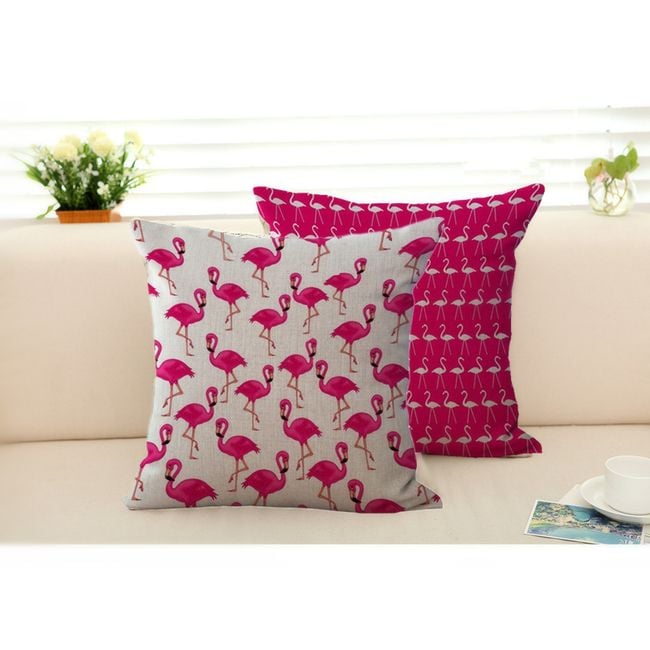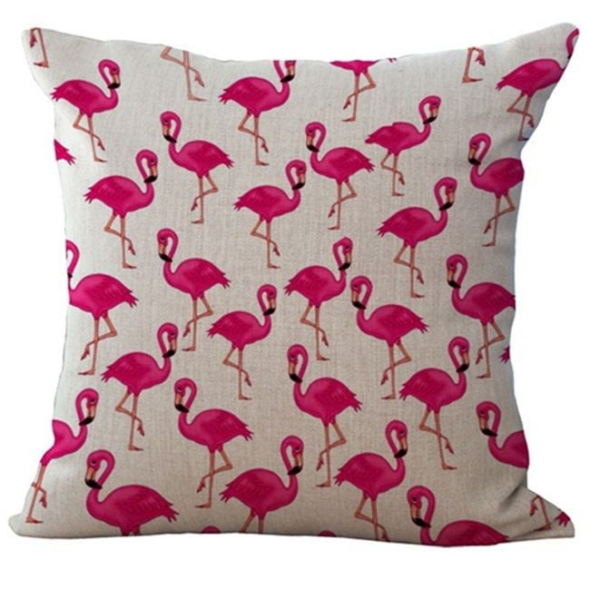 The cushion cover adorned with numerous flamingos will bring a touch of exoticism to your bedroom. It fastens with a zip and fits a cushion measuring 45 x 45 cm.