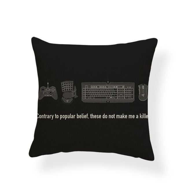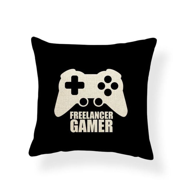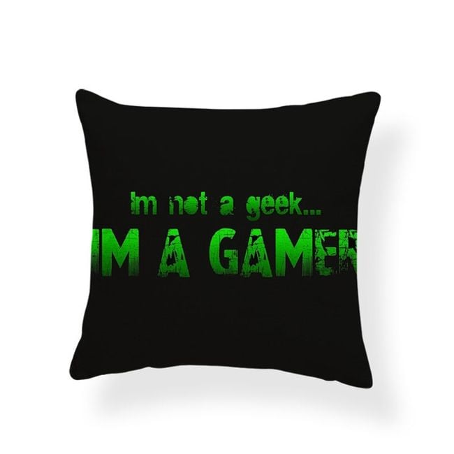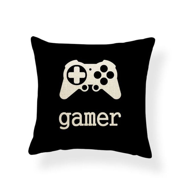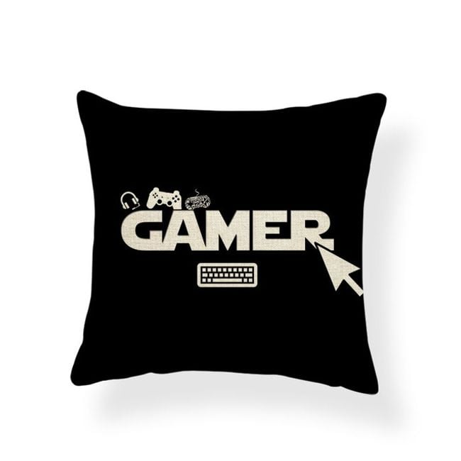 Cushion cover with inscriptions designed for computer gamers.