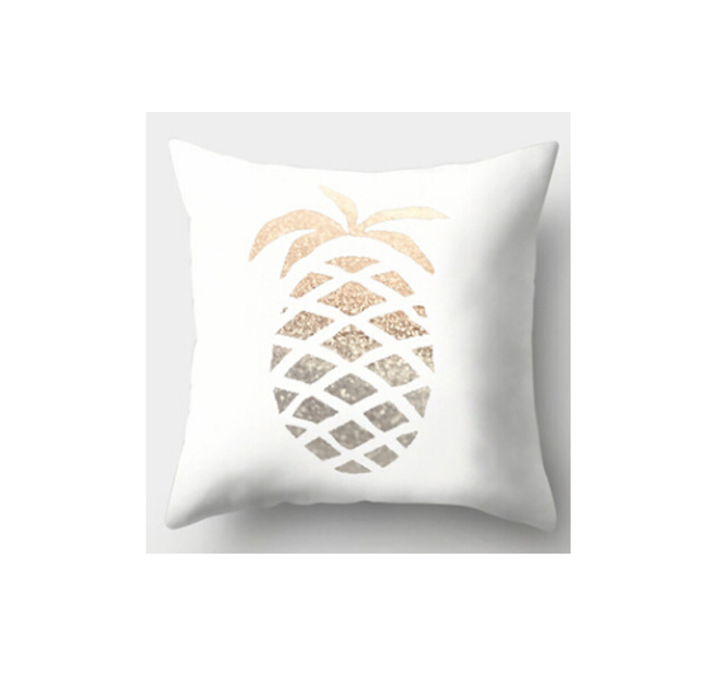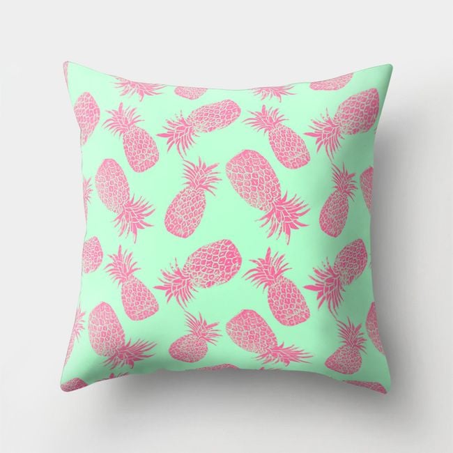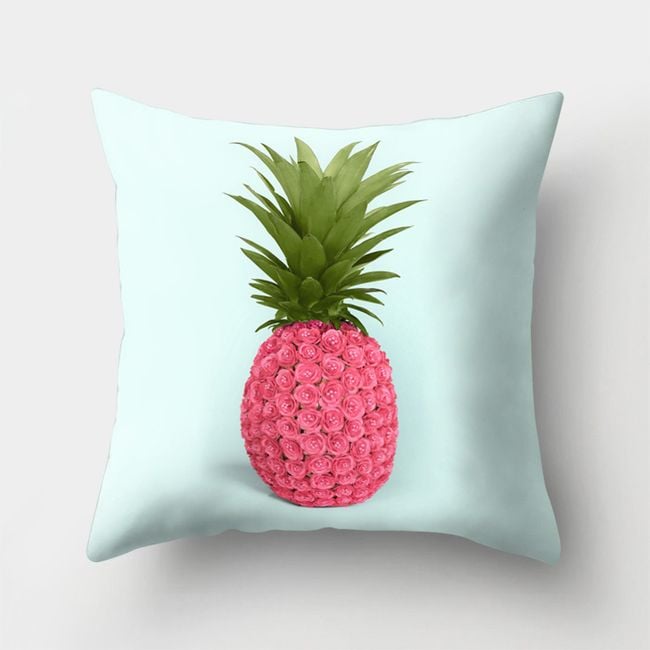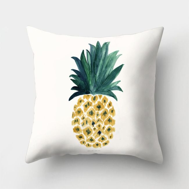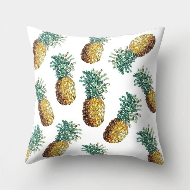The cushion cover dimensions correspond to a standard pillow, featuring a stylish print with pineapples, making it suitable for any stylish home.