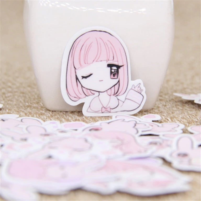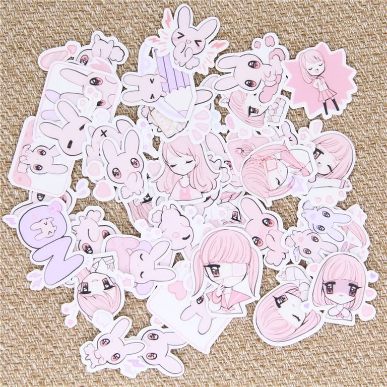 Pink Stickers of Girls and Rabbits 40 pcs