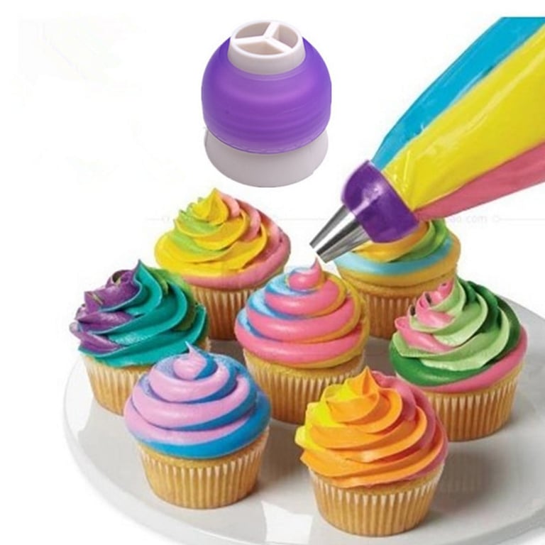 Insert three bags into the sections of the nozzle and connect them at the end with your decorating tip.