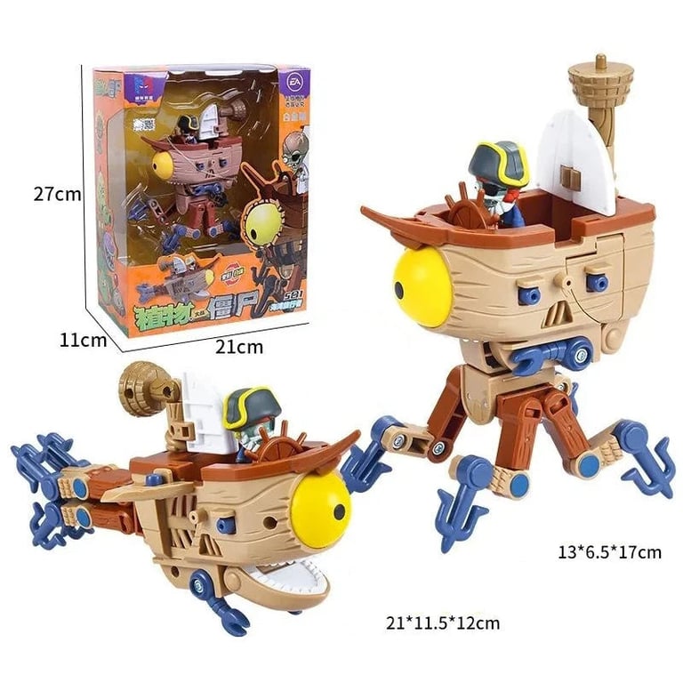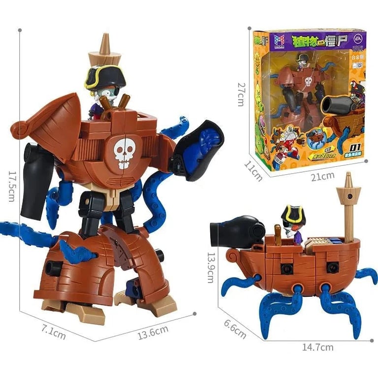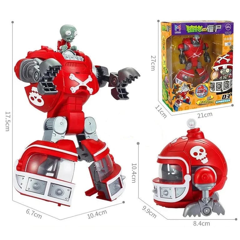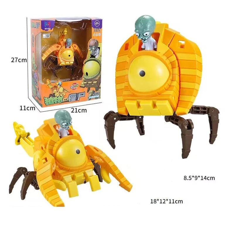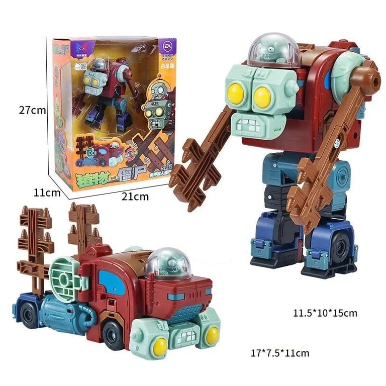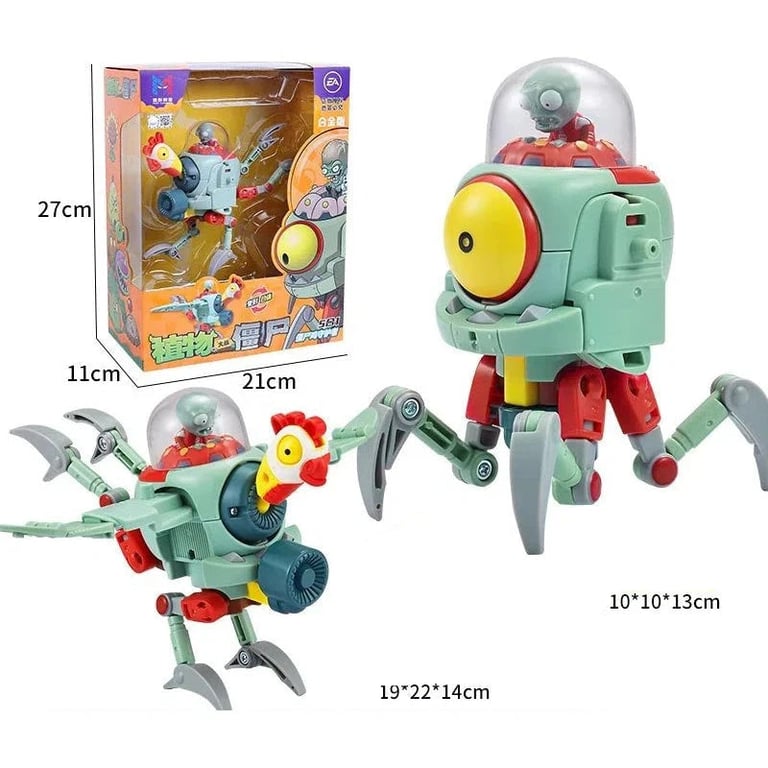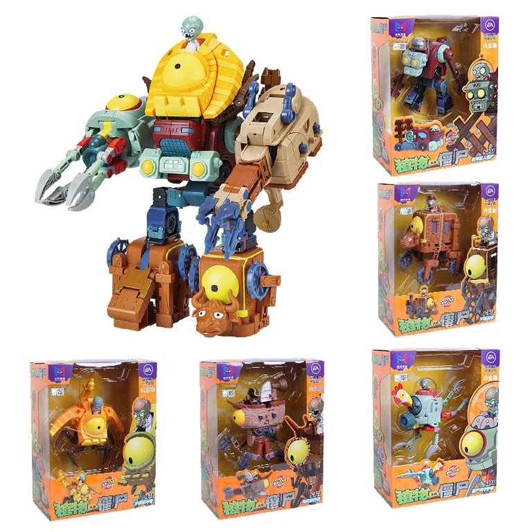 Unique construction set inspired by the popular game Plants vs. Zombies gives children the opportunity to build a giant robot composed of several smaller figurines and vehicles. Each piece represents a different machine or character, which can be combined and connected into one large transforming robot. The toy is made from high-quality plastic and metal components for greater durability and long-lasting performance.