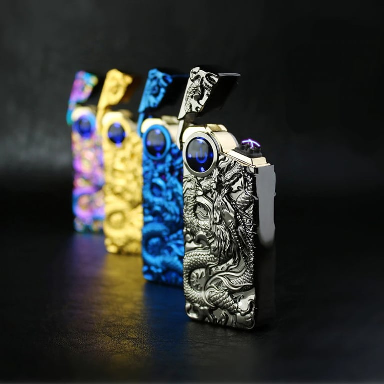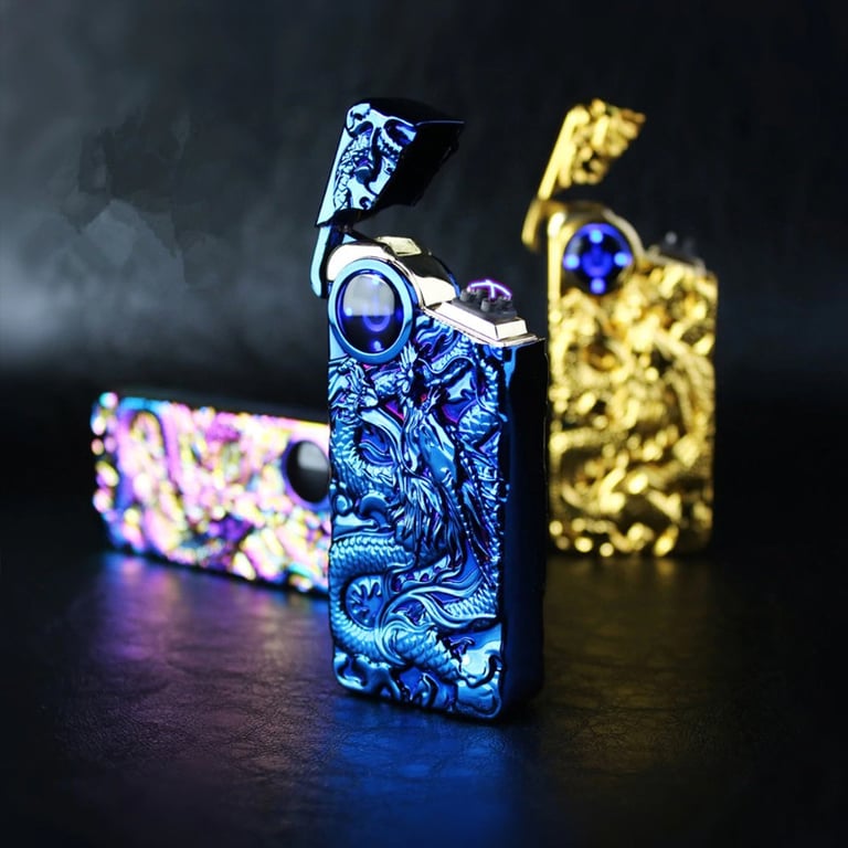 Modern weather-resistant lighter rechargeable via USB connector with plasma "flame" ignition.