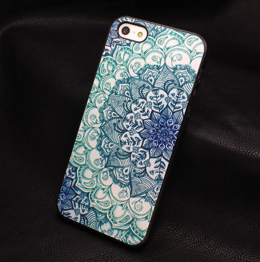 Plastic cover with a blue mandala pattern for iPhone 5/5S/SE/5C/6/6S/6Plus