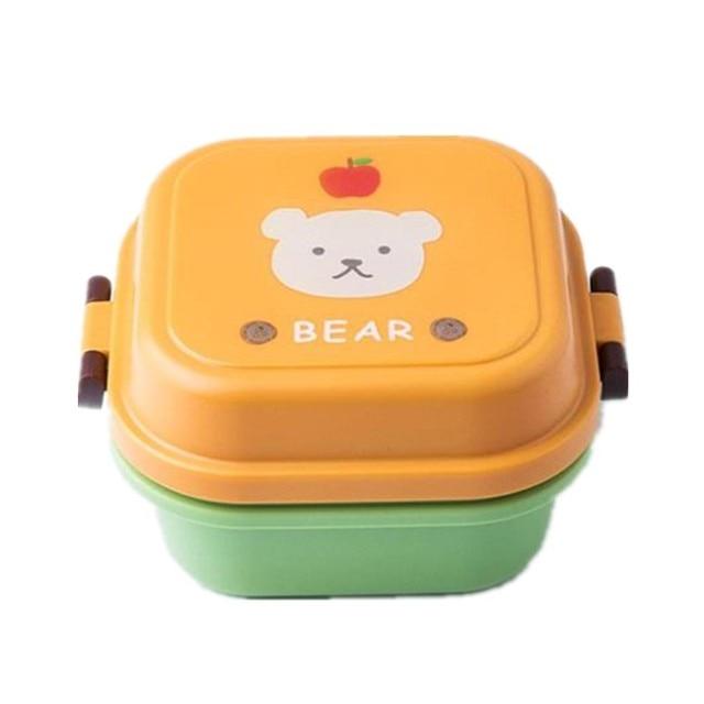 Plastic lunch box with cartoon images. Available in several colours. Can be used in the microwave.