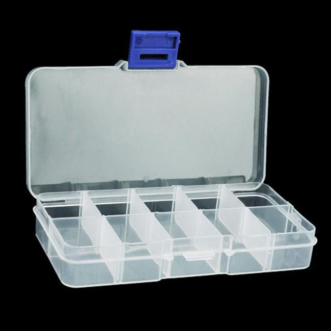 The practical transparent box with compartments can be used for fishing supplies, nail decorations, beads, and various stones.