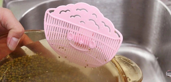 The plastic smile will help you easily rinse rice or legumes without any losses.