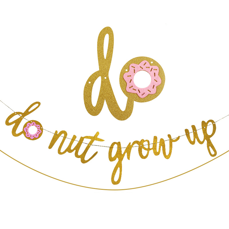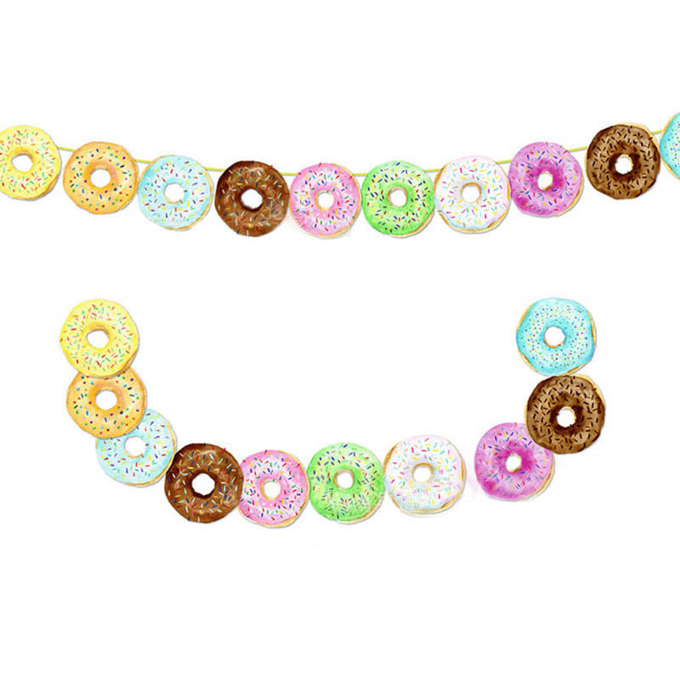 Playful hanging birthday banners in a donut pattern