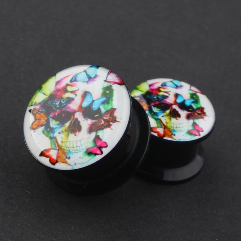 Beautiful plug with a skull and butterfly print.