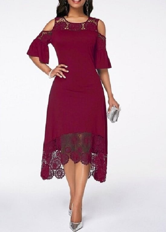 Elegant knee-length women's dress adorned with lace.