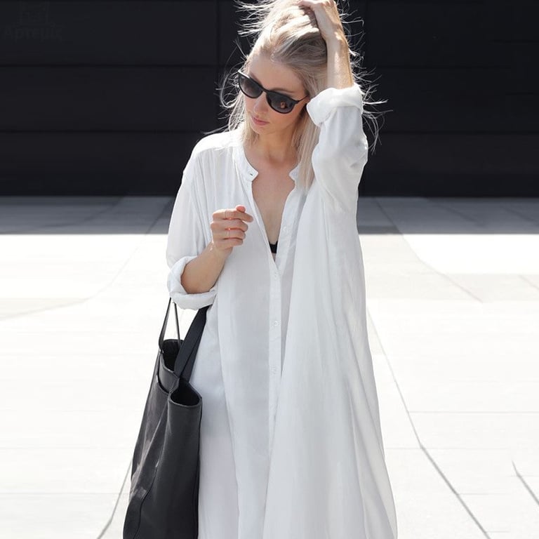 • Tags: women's dress, white, simple, long, dress, long sleeve, buttons