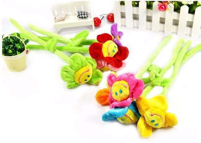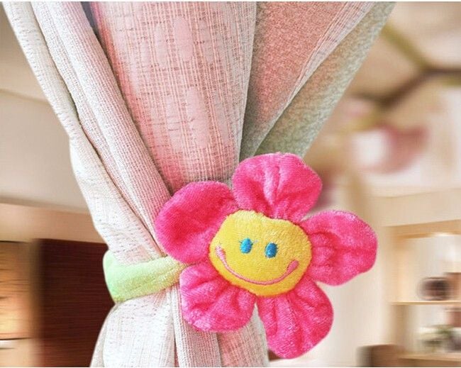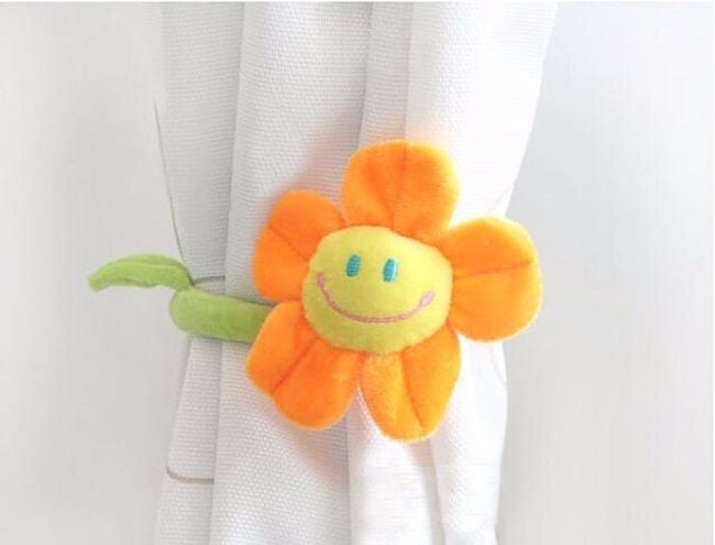 The cute plush flower has a wire hidden in the stem. Thanks to this, you can use it, for example, to tie back curtains. It will also look nice wrapped around the edge of a crib.