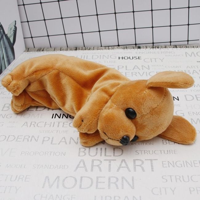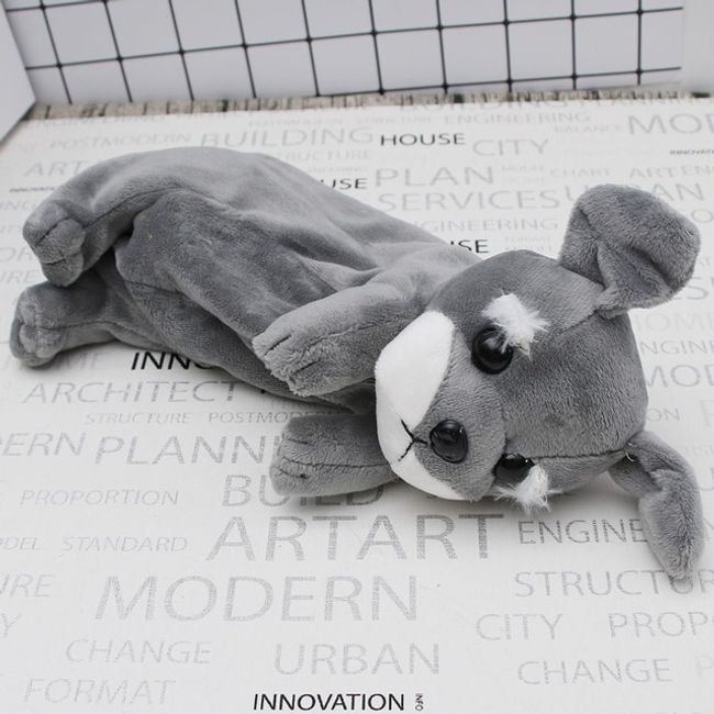 The pencil case looks like a lying plush puppy, it is very stylish and due to its size, it fits into any bag or backpack.