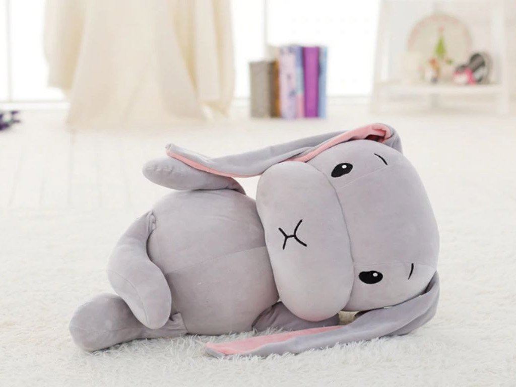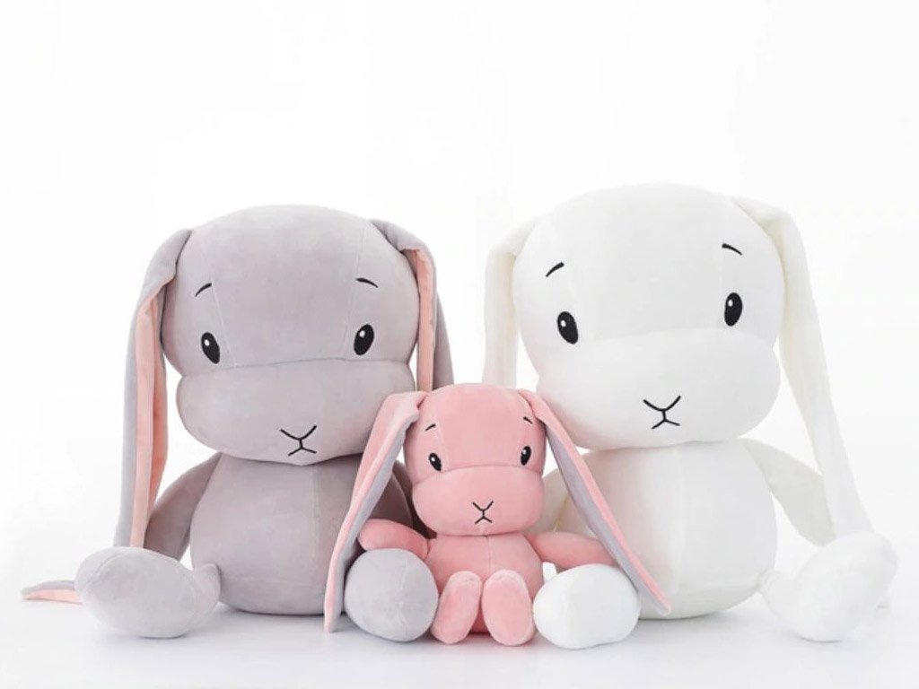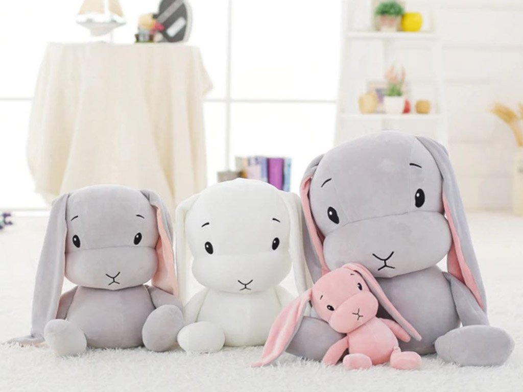 An abnormally cute bunny for your children. Get your kids a plush friend that will bring a smile to your face whenever it looks at you. A large, medium, or small bunny is sure to charm you with its appearance. A great gift for children and friends!