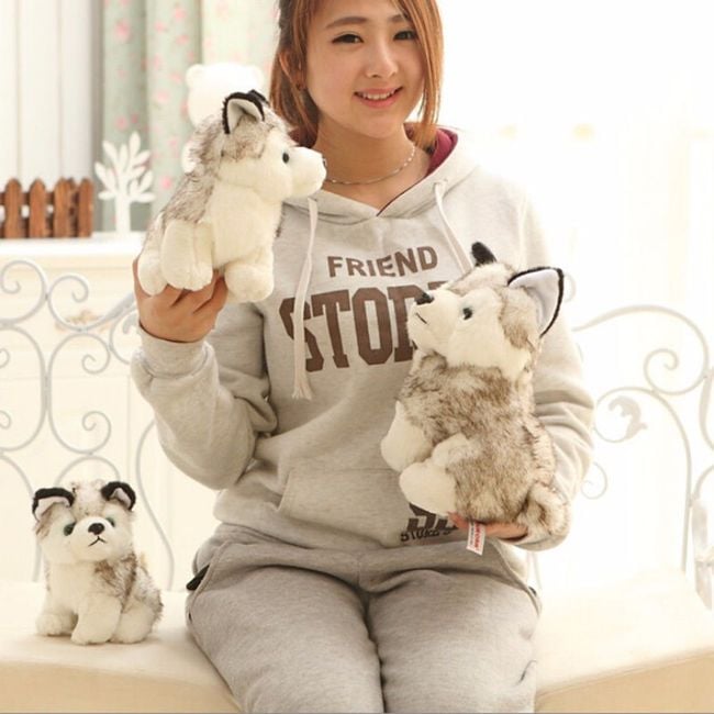A plush toy in the form of a cute puppy will serve as a pet for children.