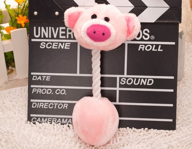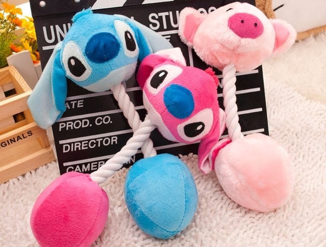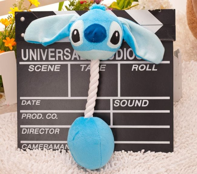 The plush toy for dogs has a rope instead of a body for tugging.
