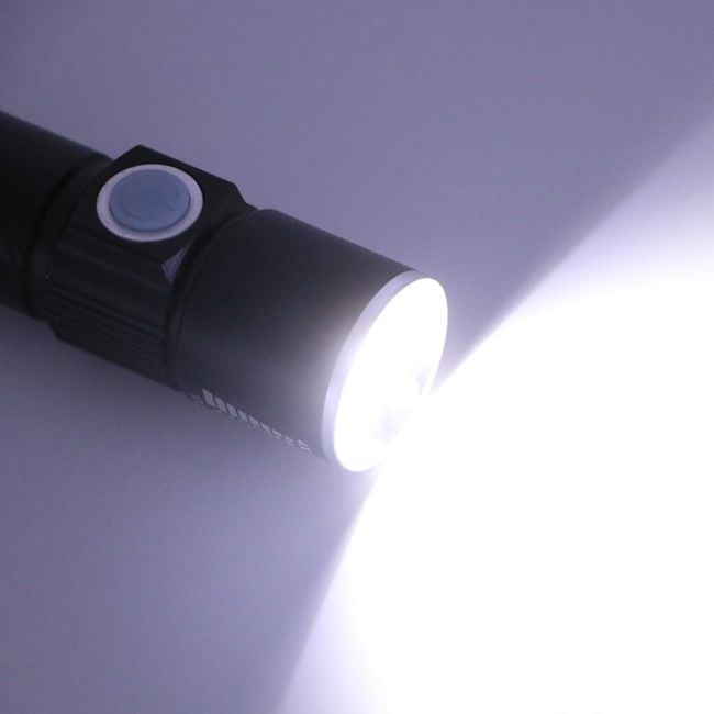The flashlight easily fits in your pocket and has a range of up to 200 metres.