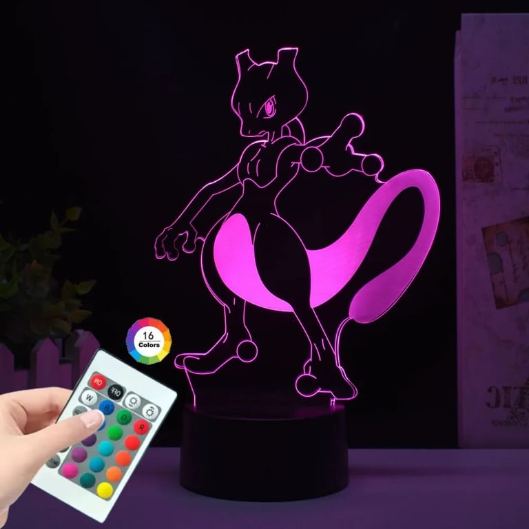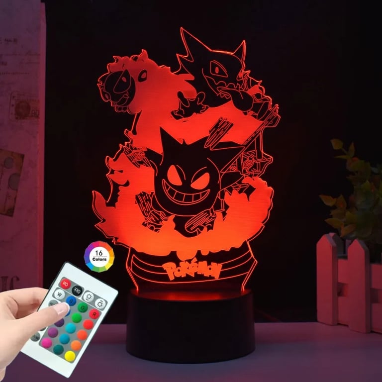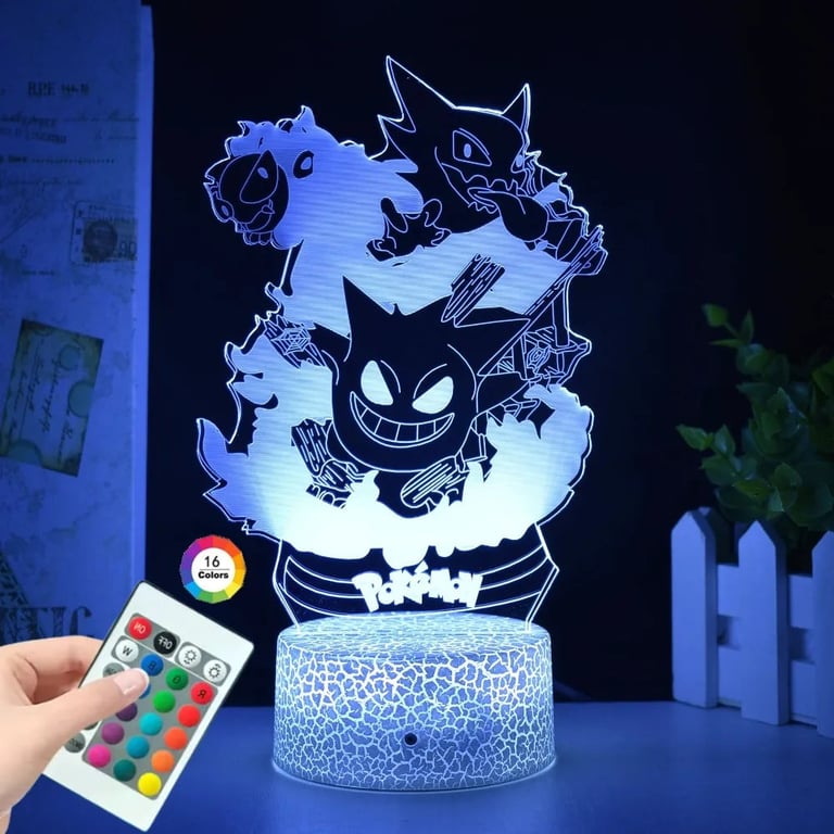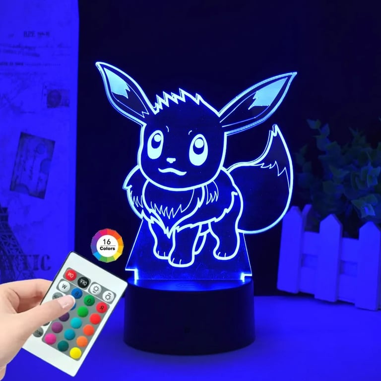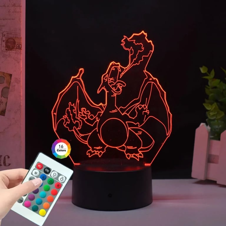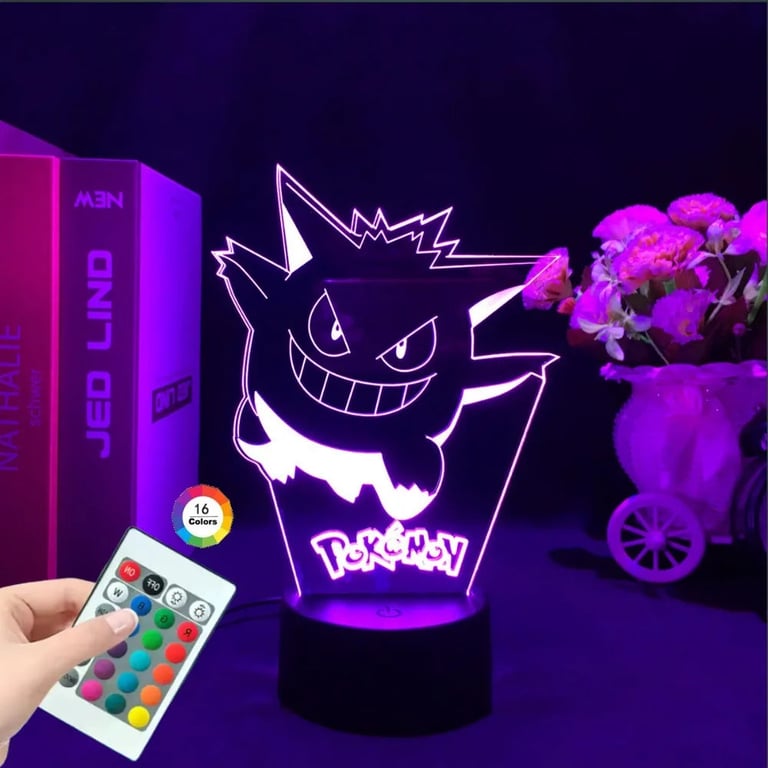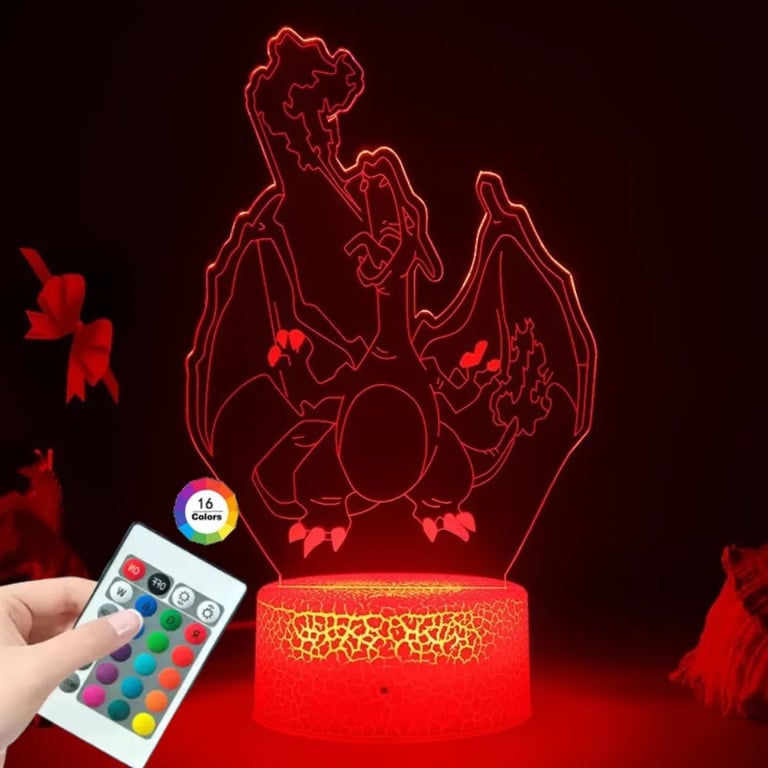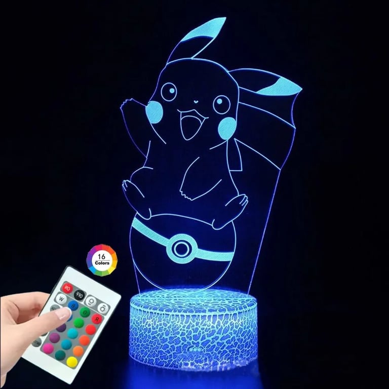 LED night light featuring Pokémon motifs is among stylish, colourful decorations for a child's room. The engraved acrylic panel displays favourite characters, for example Pikachu, Charmander, Squirtle, Bulbasaur and others, and thanks to energy-saving LEDs it shines in up to 16 different colours. The colours and effects can be controlled with the remote control or by touch, and the lamp is powered via USB.
