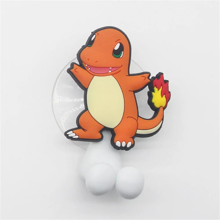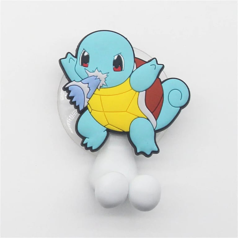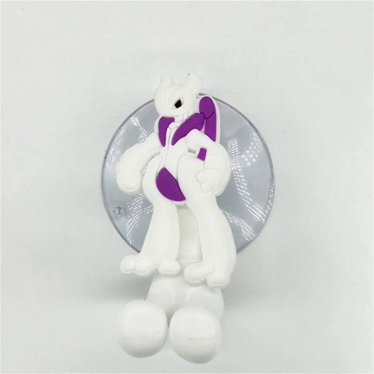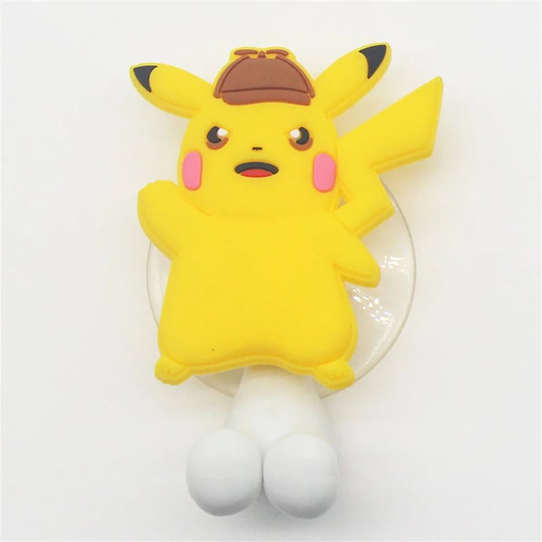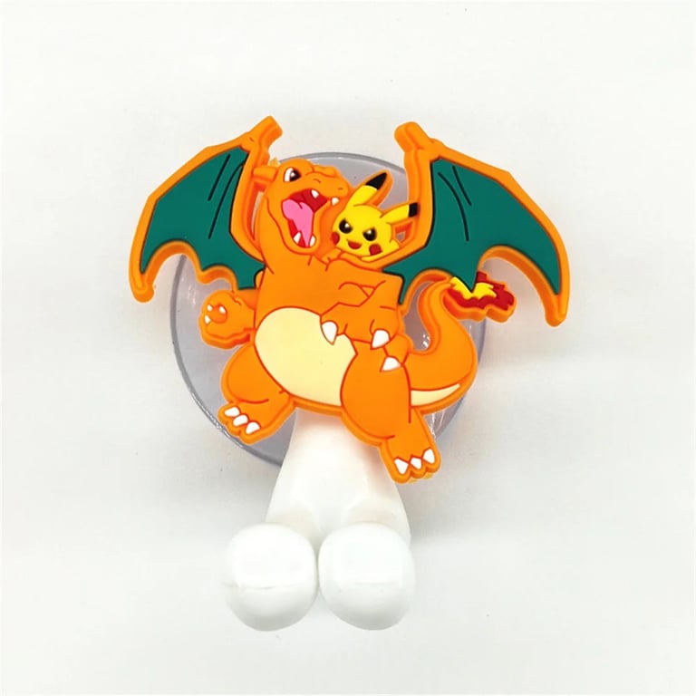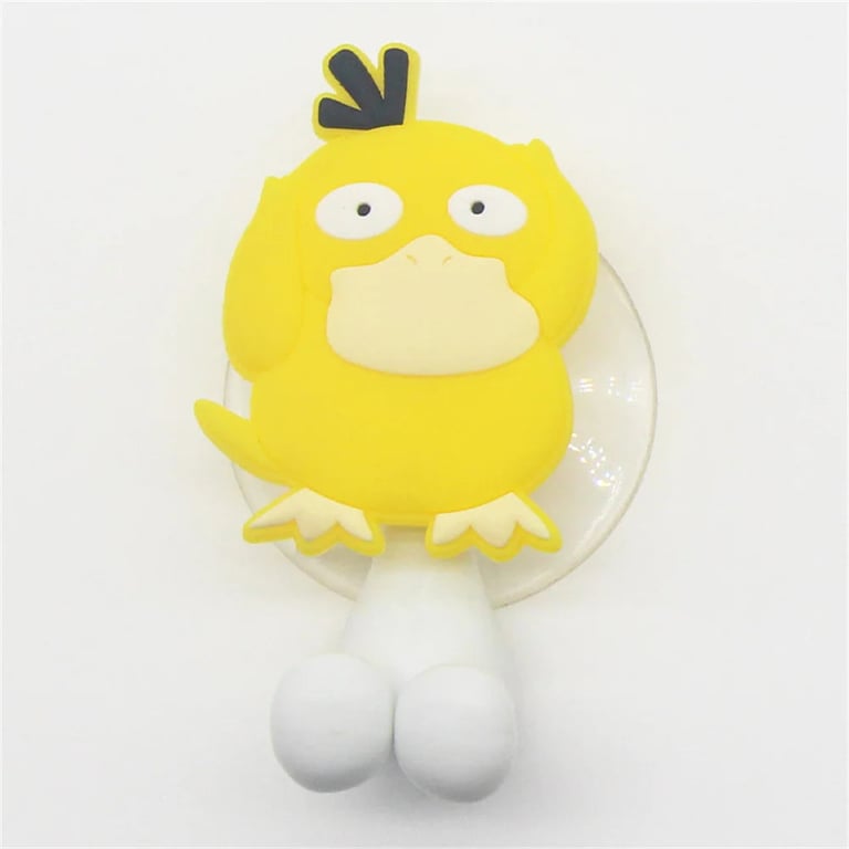 The holder attaches to surfaces such as mirrors or tiles using a suction cup.