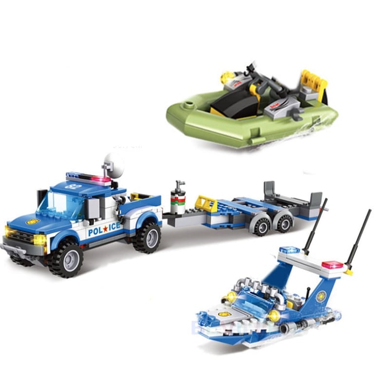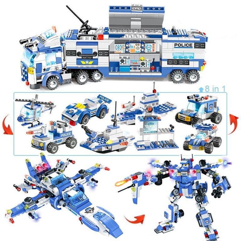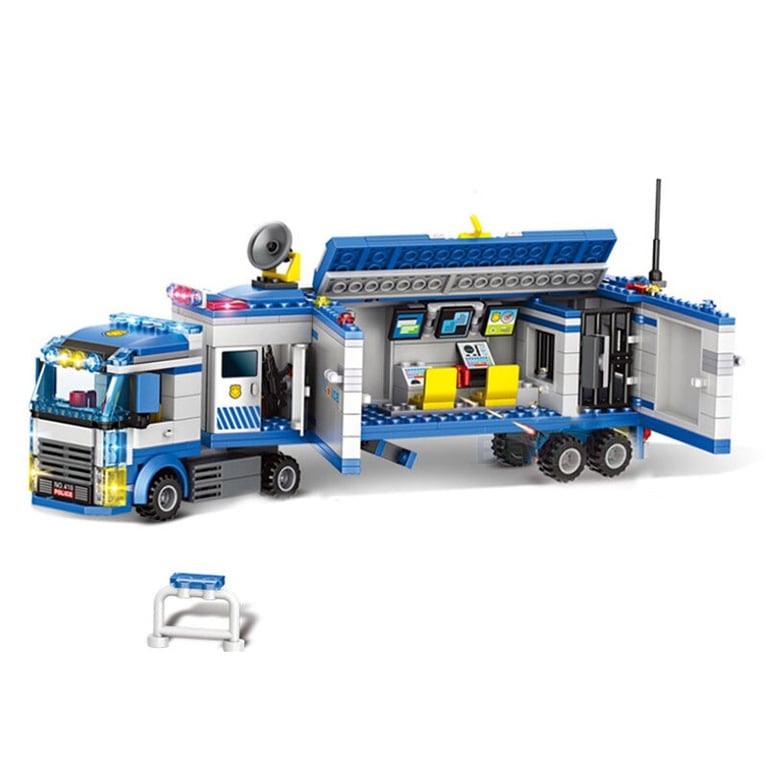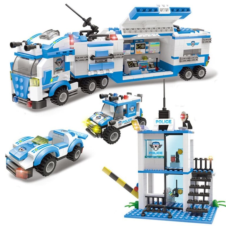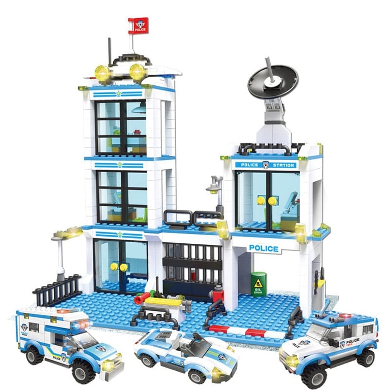 The police station building set is compatible with Lego building sets.