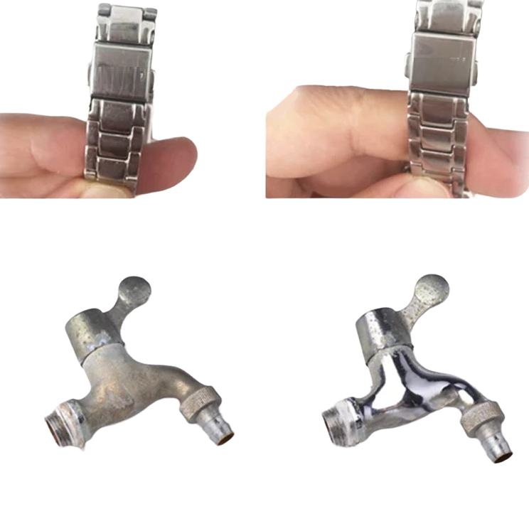 This polishing paste easily removes stains from metal surfaces. Thanks to its non-abrasive properties, it is completely safe and does not damage any metal products. The polishing paste is suitable for copper, brass, coin silver, aluminium, stainless steel, or even gold.