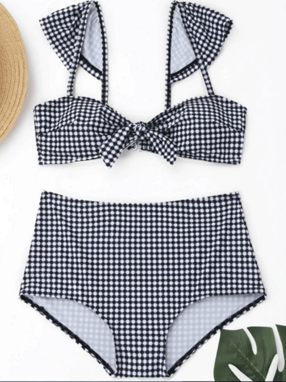 Polka dot black and white beautiful women's swimsuit with ruffles