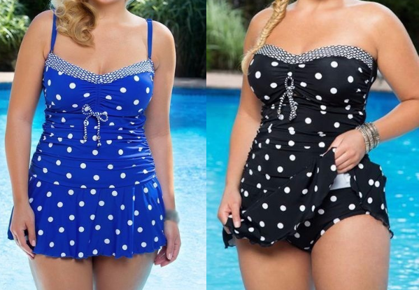 Polka dot ladies' plus size swimsuits in 2 colours