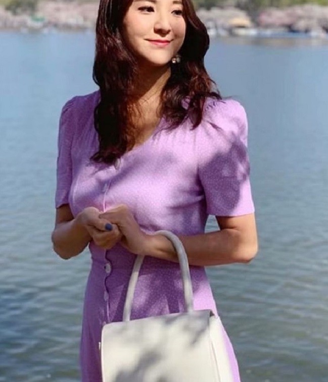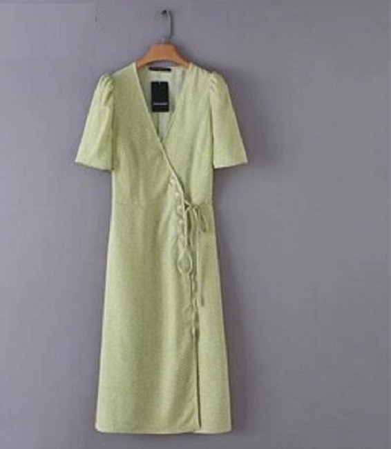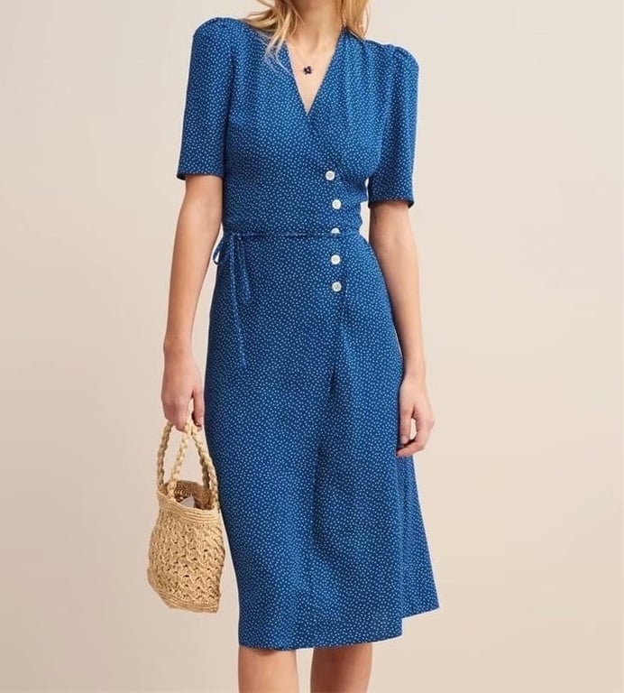 Elegant summer dress below the knee with a delicate polka dot pattern.
