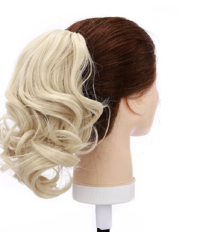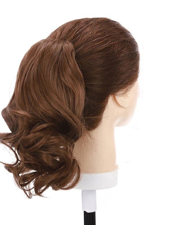Short hairpiece made from synthetic fibres. Suitable for fine and thinning hair. High durability. Easy and quick attachment. Adds volume to thin hair or extends it.