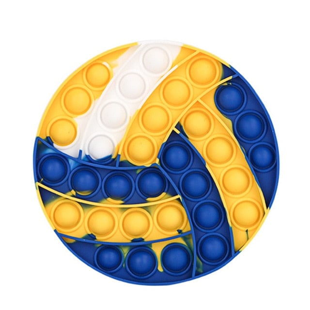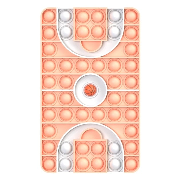 Stress relief toy POP IT in the shape of balls from various sports and in the shape of a playground.