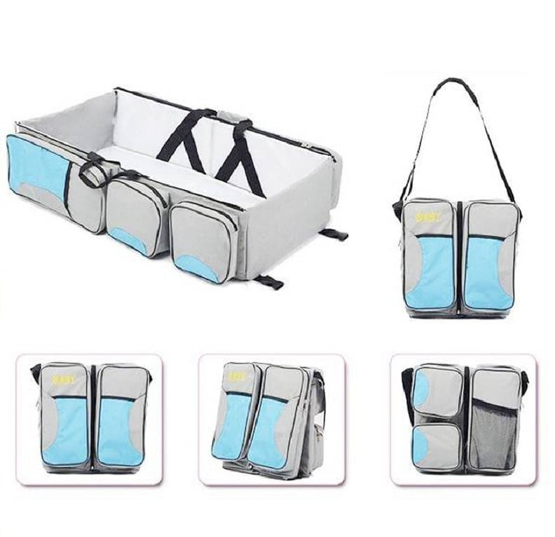 Super practical 3-in-1 folding maternity bag - changing bag, portable bag, and children's travel cot.