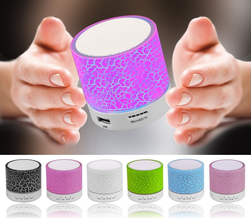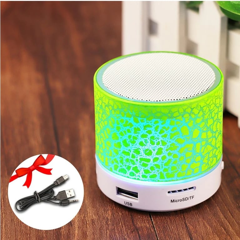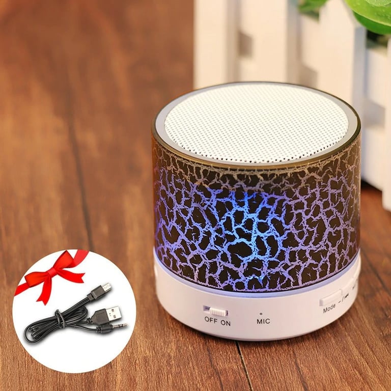 The speaker is battery-operated (batteries not included). Connection range of 10m.