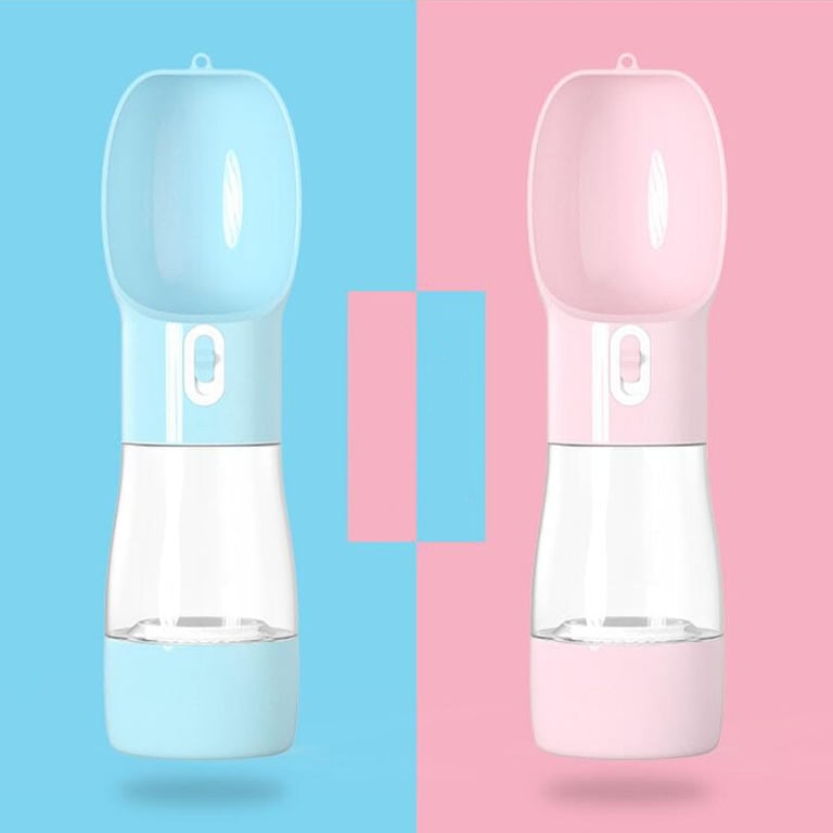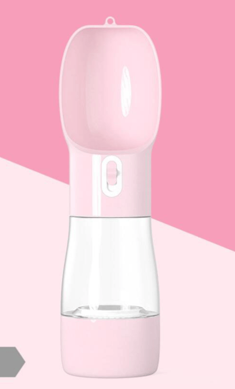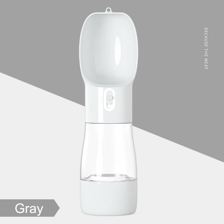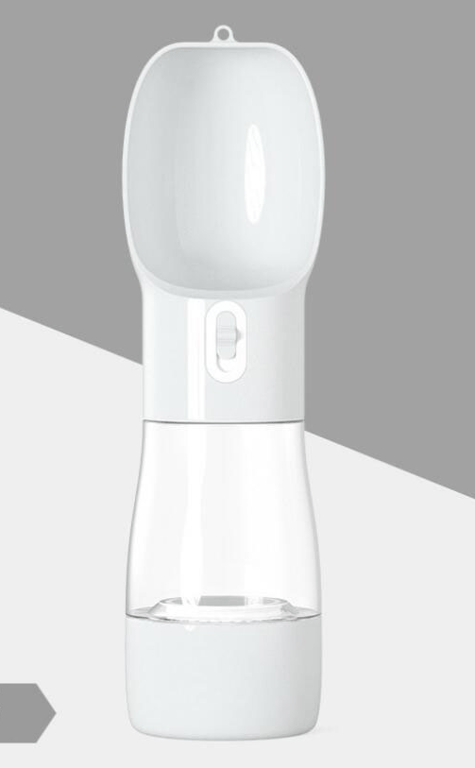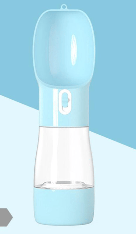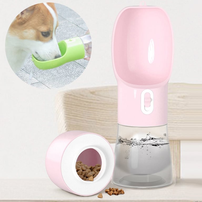 Available in several colours. The bottle can hold up to 250 ml of water and the bottom part can hold up to 200 g of pet food. You will have everything nicely together, and you won't have to worry about your pet's unexpected hunger or thirst.