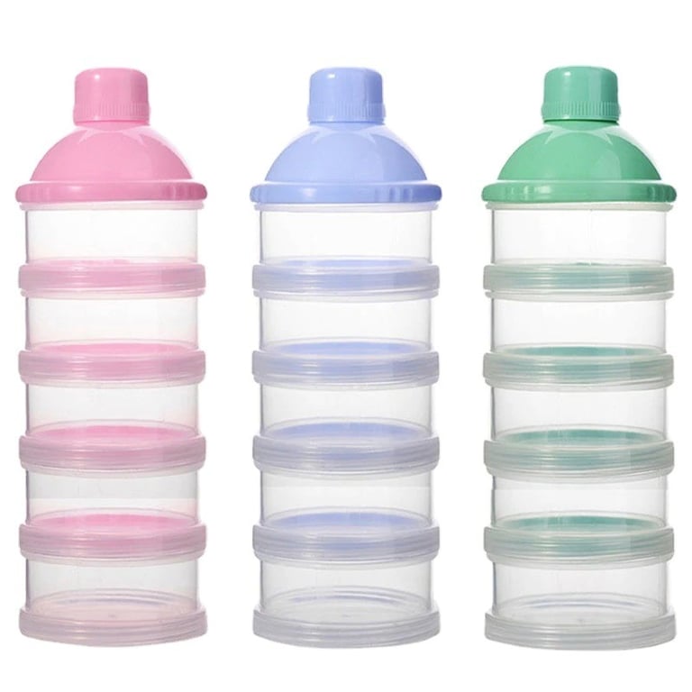If you're planning a visit or a trip and don't want to take a whole box of powdered milk with you, you should get this dispenser. It is also suitable for various snacks. It consists of five separate and sealable parts that can be easily stacked on top of each other.