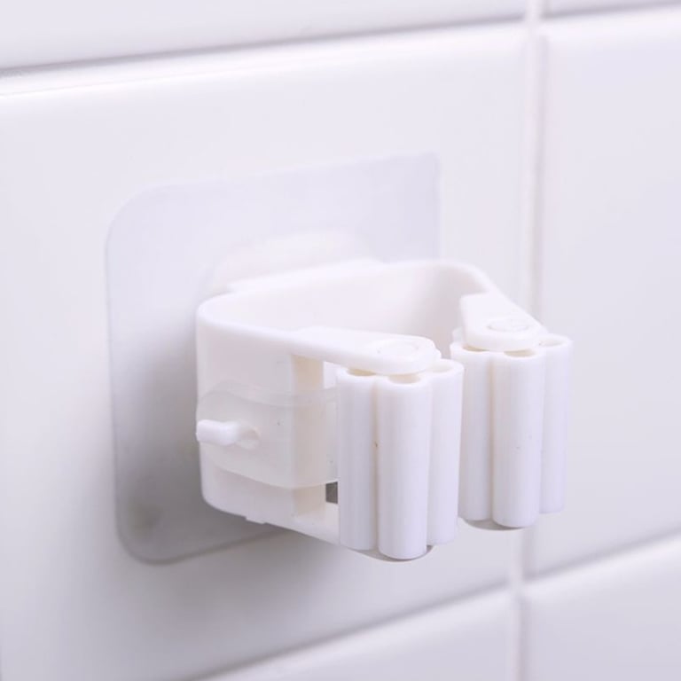 A practical plastic holder for a mop or broom. The holder can be used throughout the flat – in the bathroom, kitchen, pantry, or anywhere you store a broom or mop.