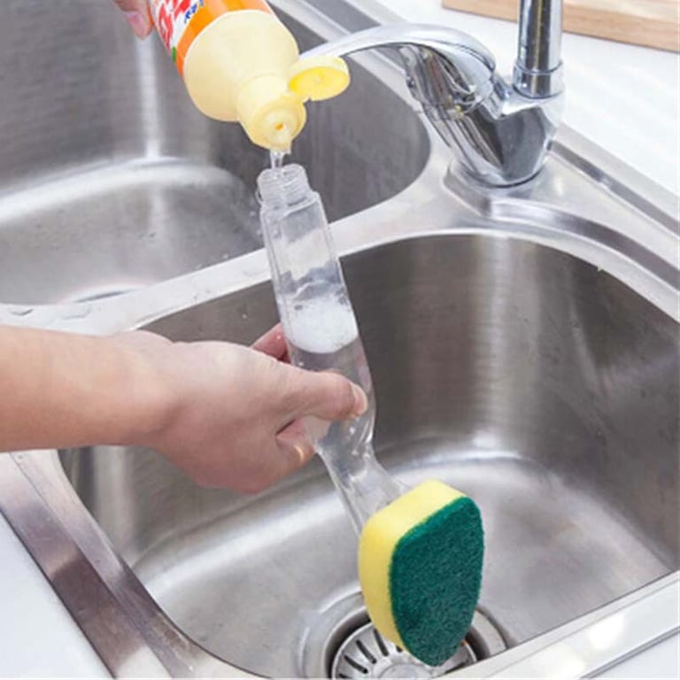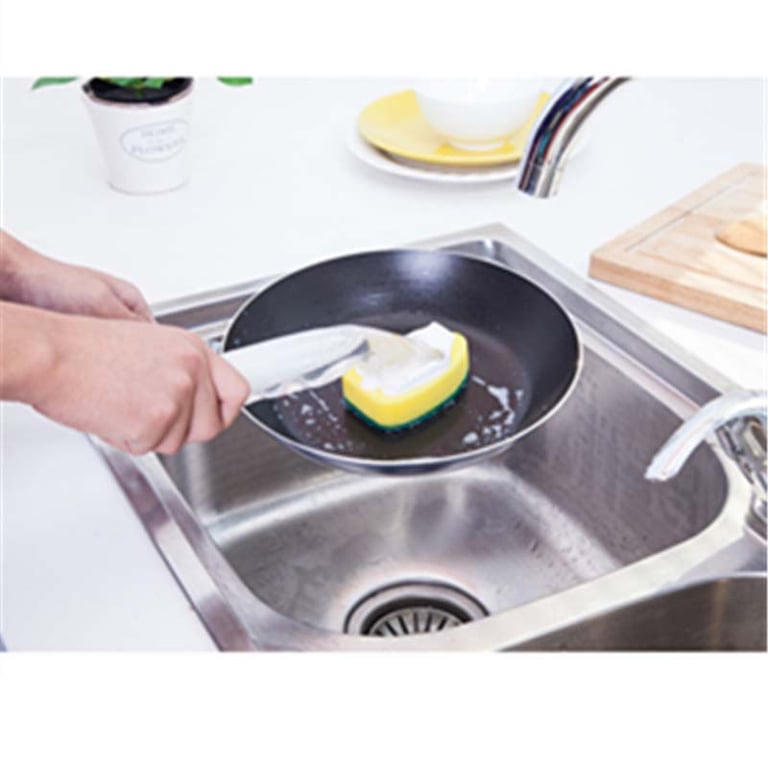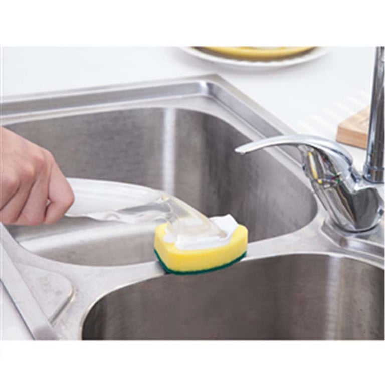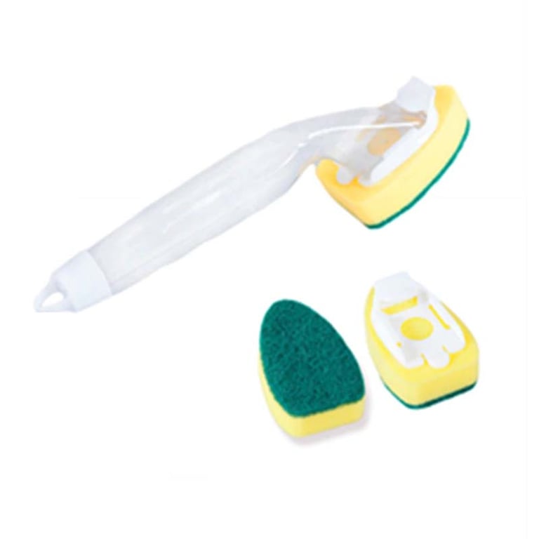 A practical kitchen sponge not only for dishes, with a handle that can be filled with a mixture of water and detergent. In the options, you can choose a complete set or just replacement sponges.