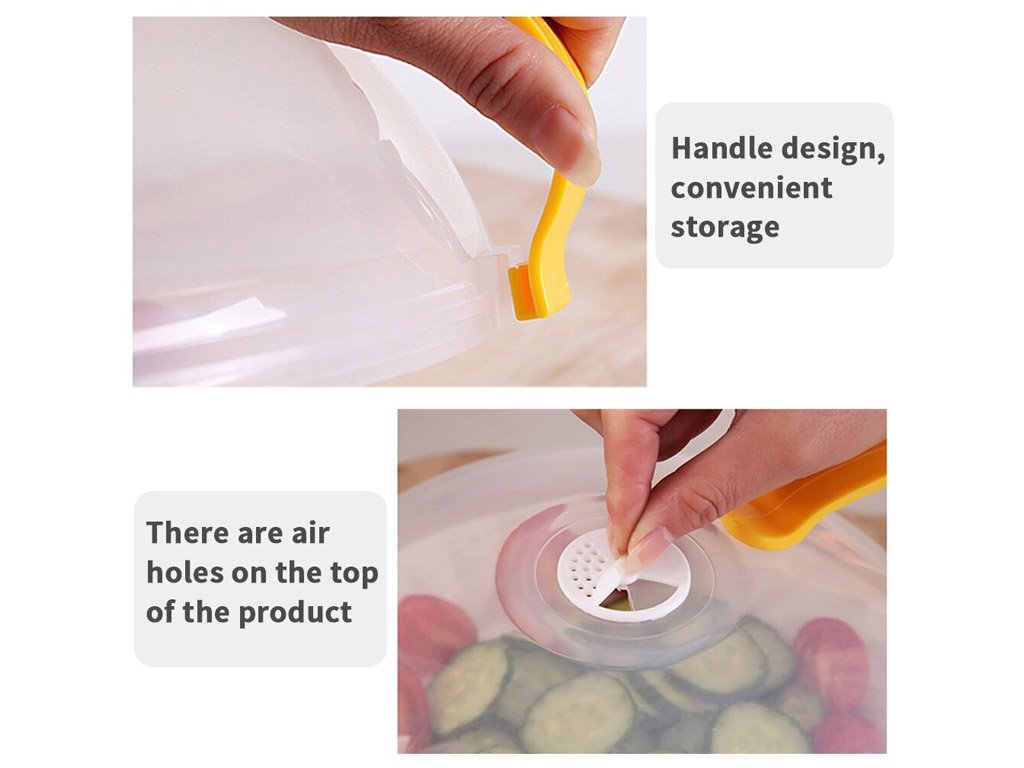 The cover not only serves for safe transportation but also helps keep food fresh for longer or protects it from insects on summer days.