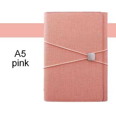 A practical organiser with an elastic closure. Inside the covers, you will find pockets for cards and documents, a loop for a pen, a ring binder with a notepad, and a pocket for money or a mobile phone.