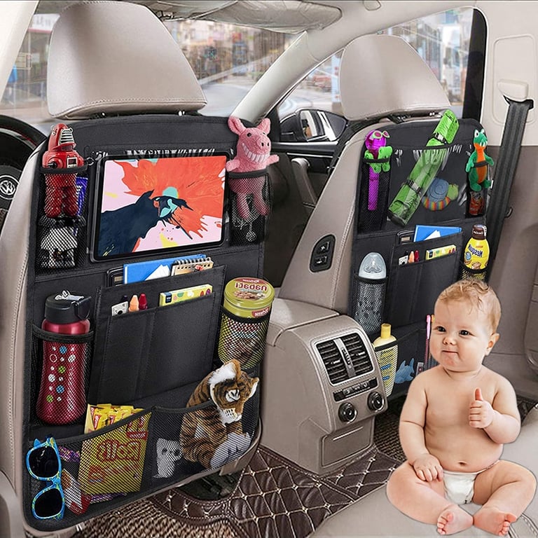 The practical car seat organiser is useful when travelling with children, as you often need a lot of items: food, drinks, toys, books, etc. The organiser has around 10 pockets where you can store just about anything.