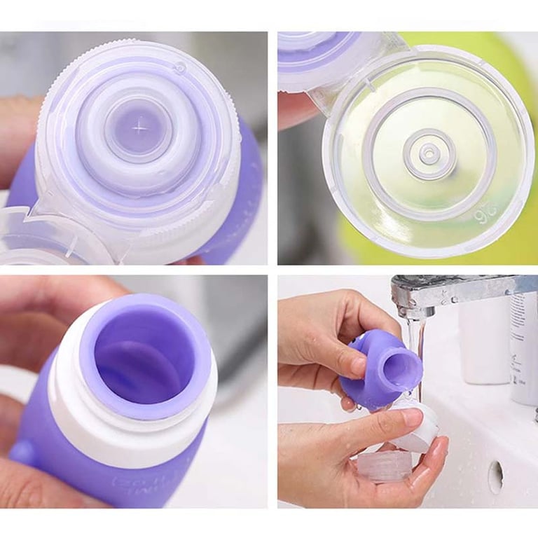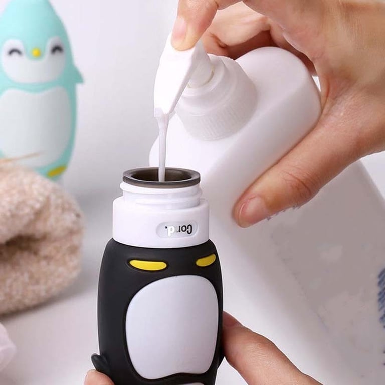 Stylish silicone travel bottles that easily hold shampoo, shower gel, or makeup remover.