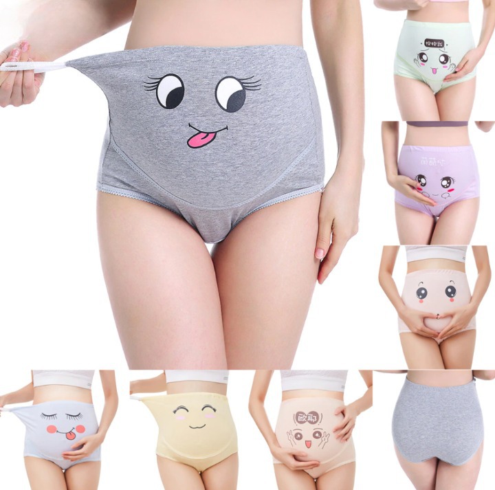Pregnancy high-waisted panties with a cheerful face print.