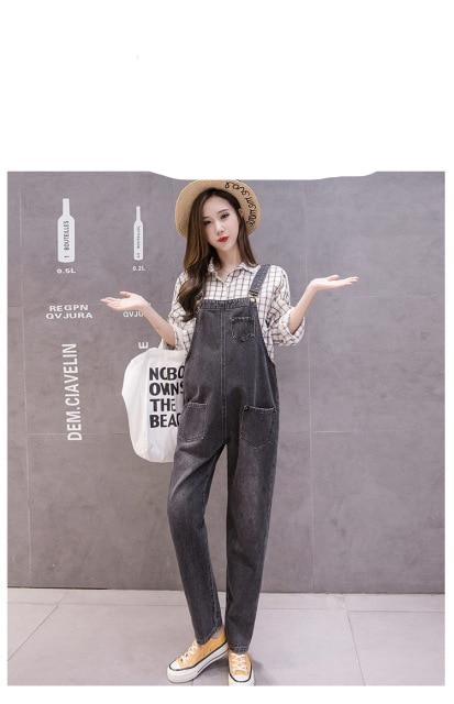 Denim maternity overalls with embroidery. Available in blue or black.