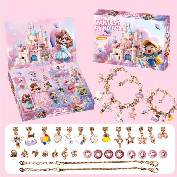 • 24 charms, beads and jewellery pieces with fairy-tale motifs
