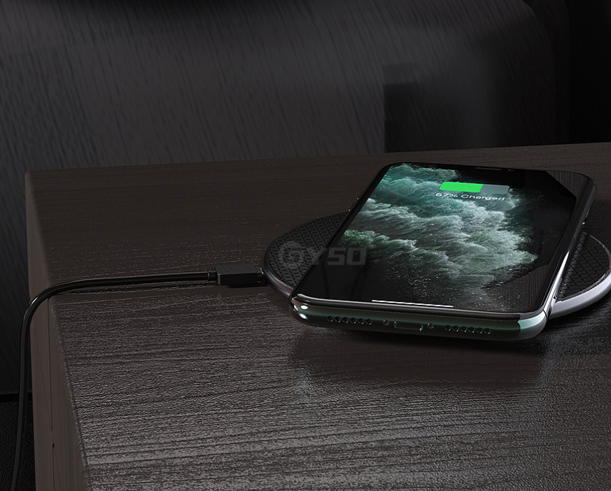 The wireless charger in the form of a pad is designed for mobile phones that support wireless charging.